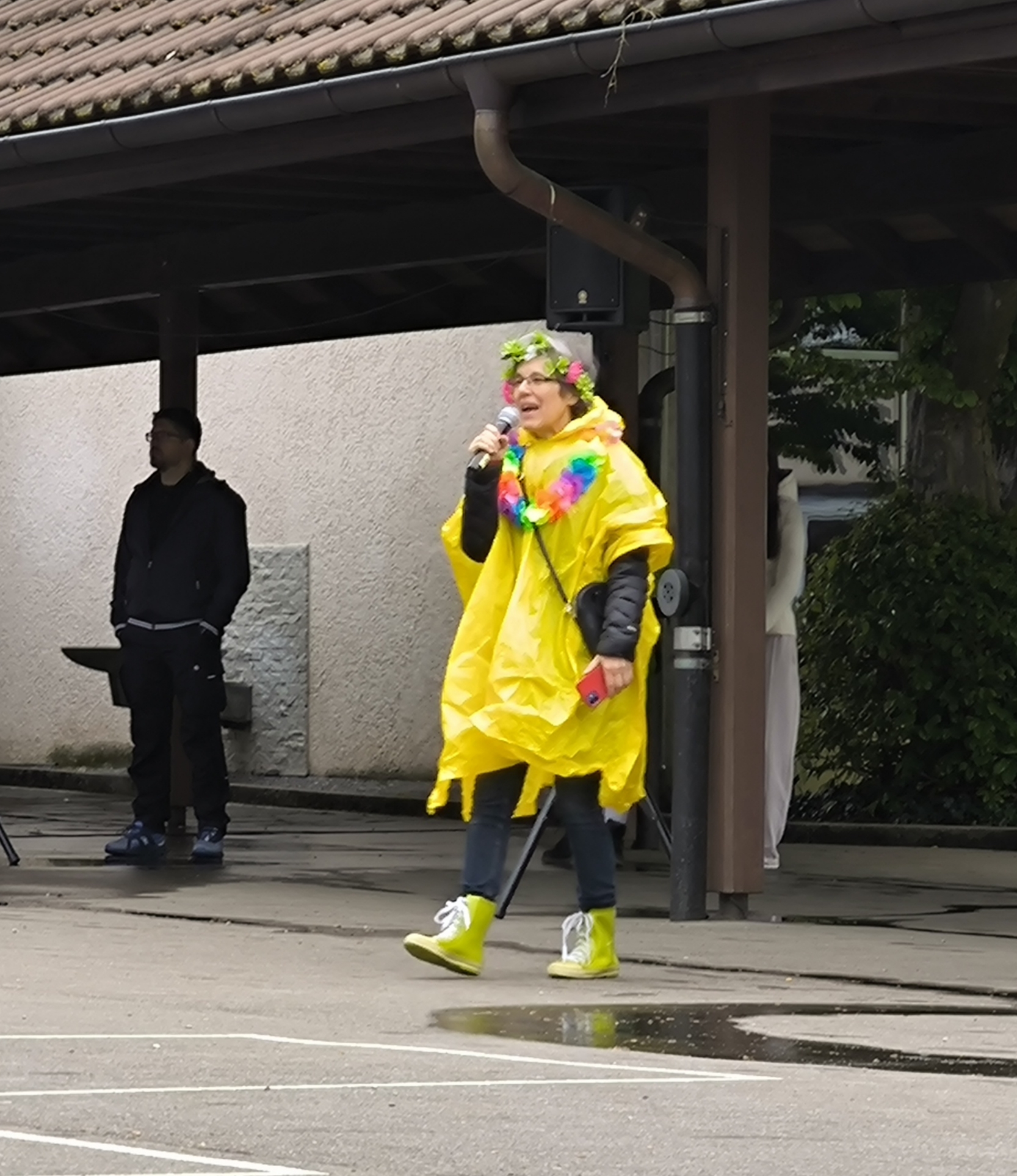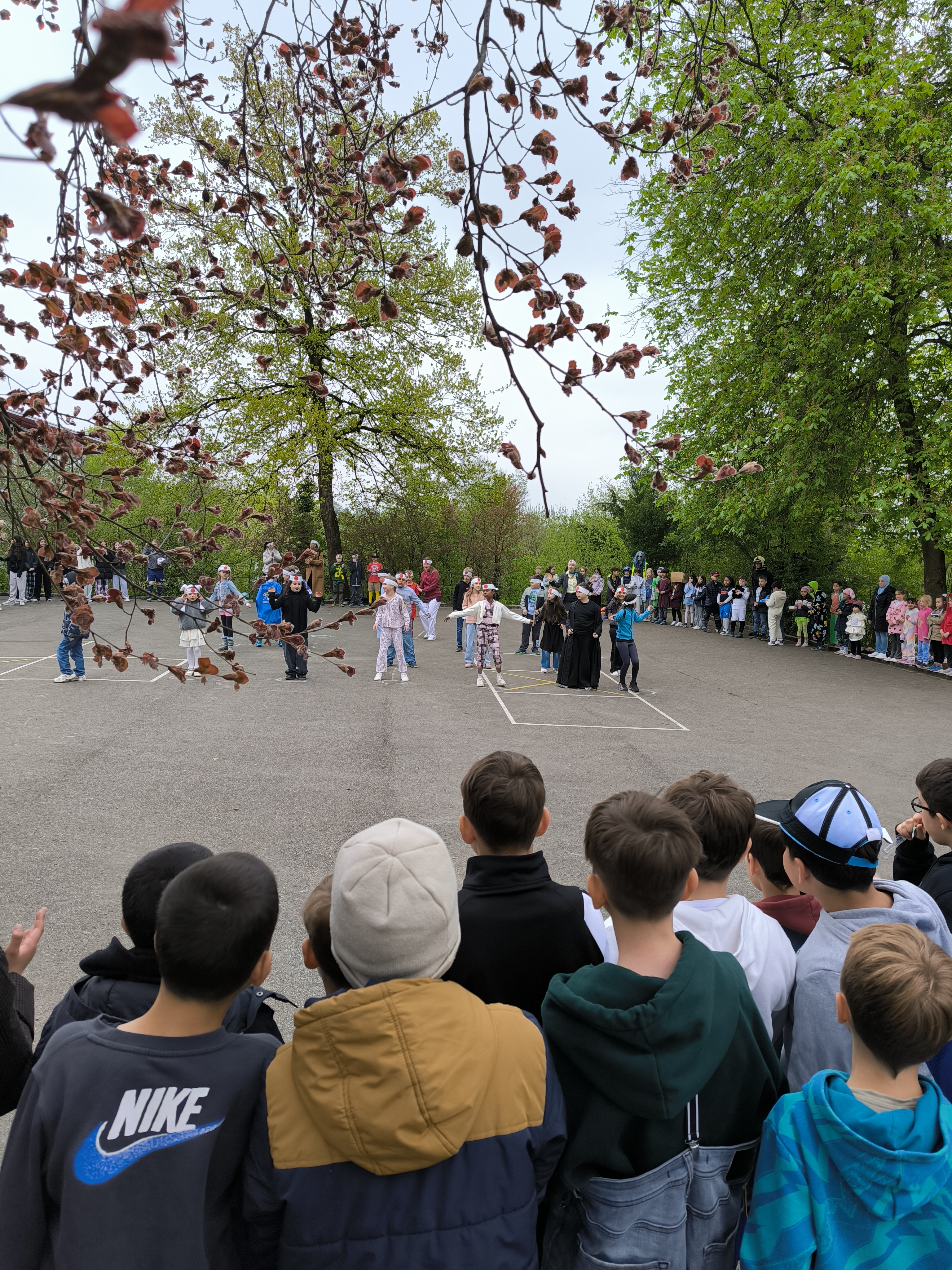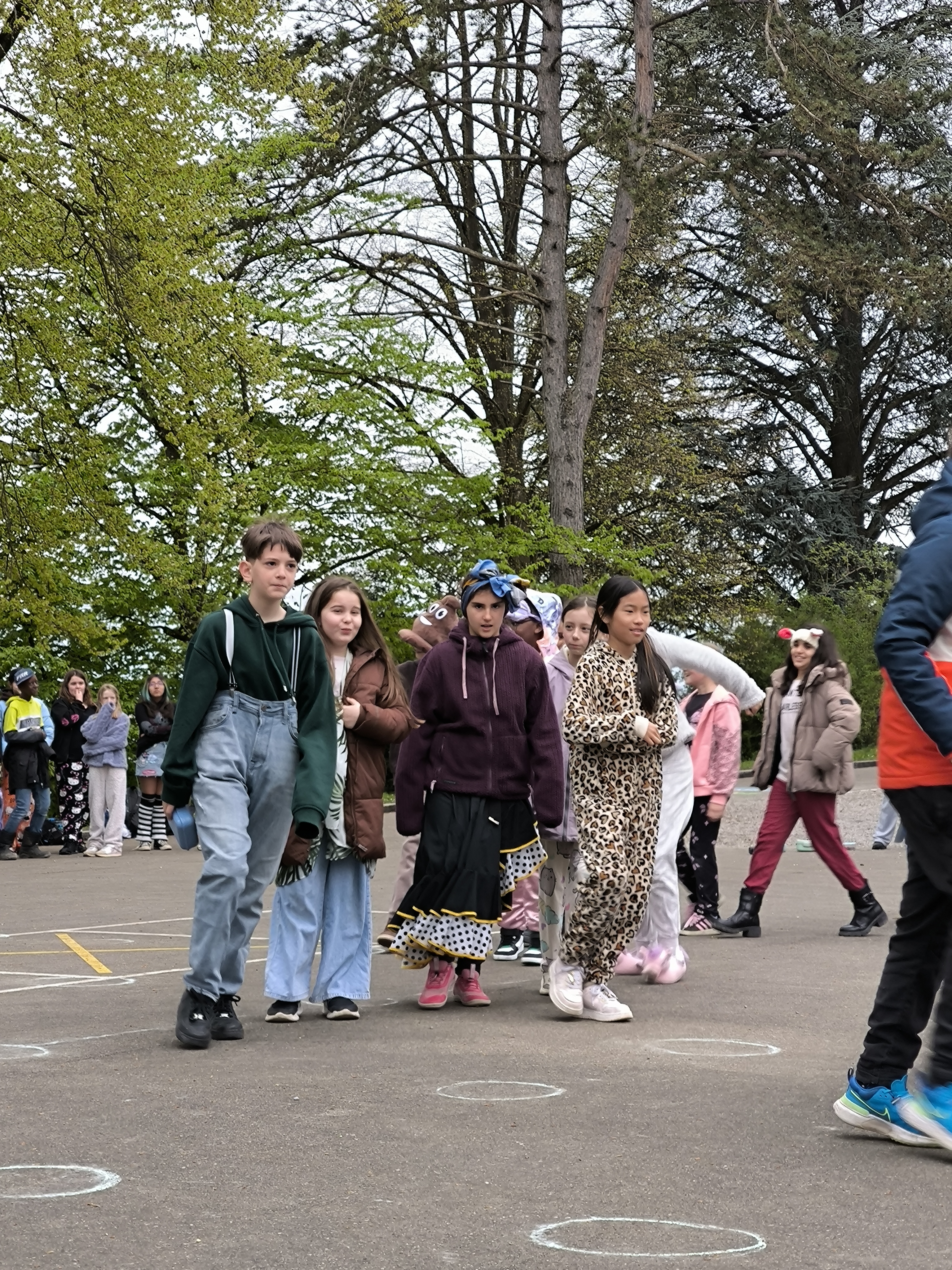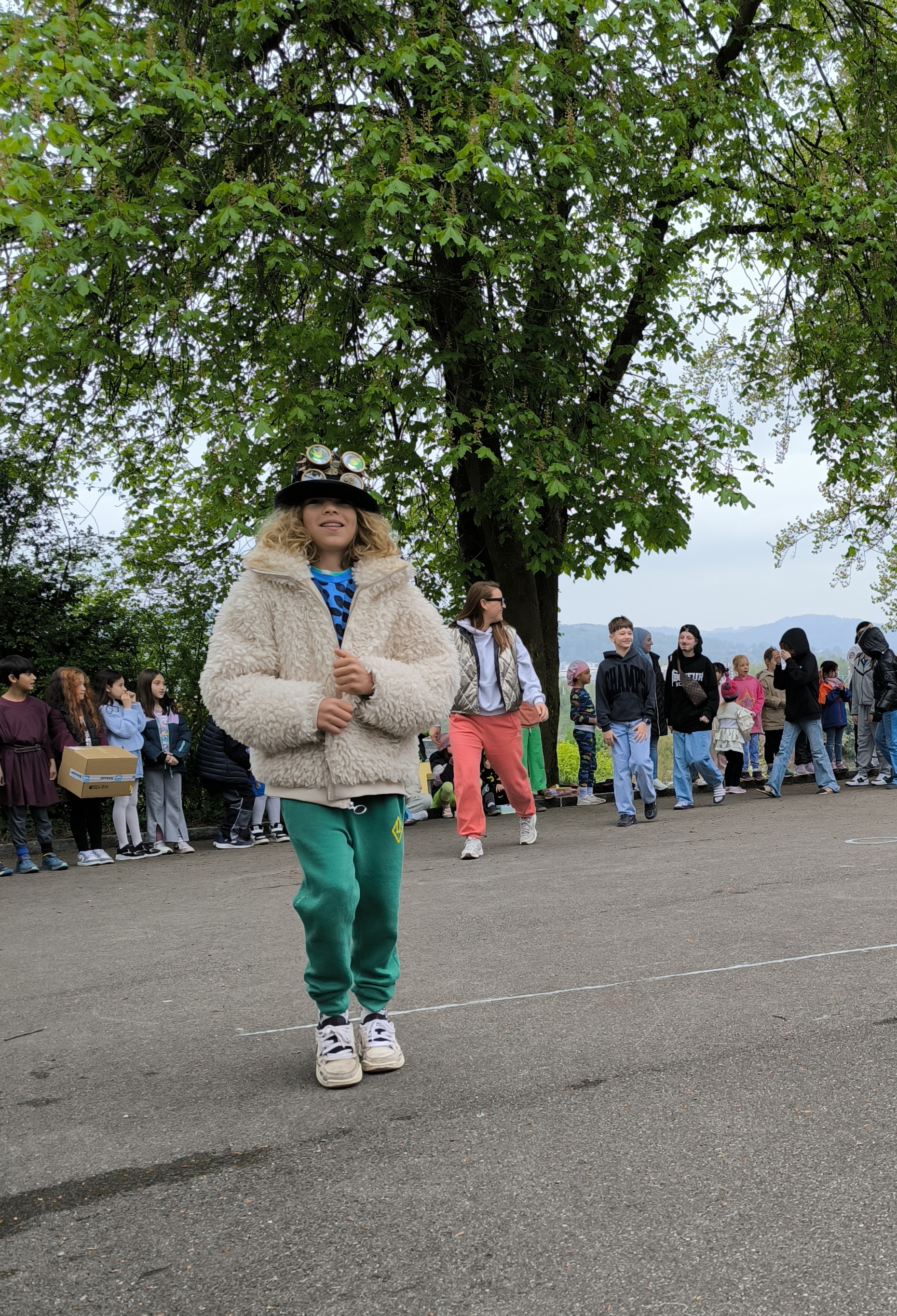 Während der grossen Pause präsentierten die einzelnen Jahrgänge ihre kreativen Looks bei einem Schaulaufen zu selbstgewählter Musik. Begleitet wurde der Anlass von einer kurzen Ansprache der Schulleitung – ebenfalls im farbenfroh-ausgefallenen Look.